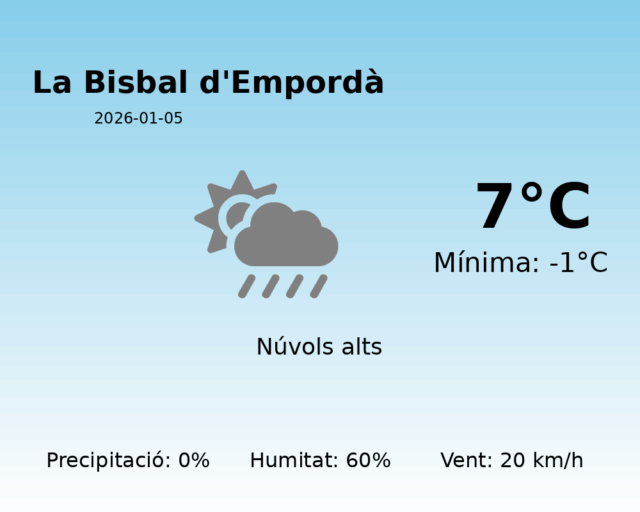Predicció Meteorològica per a La Bisbal d’Empordà – 5 de gener de 2026