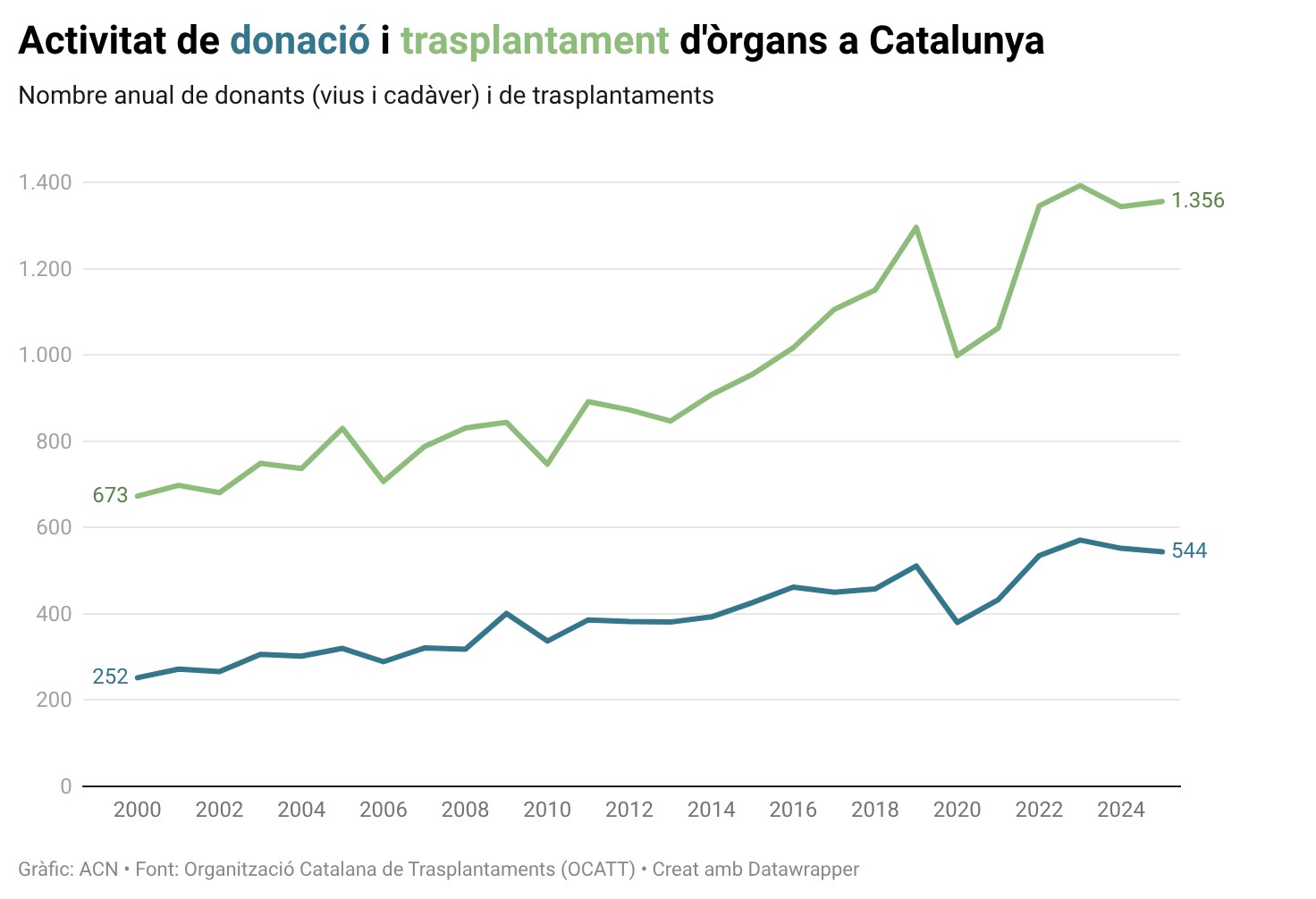 Catalunya va fer 1.356 trasplantaments el 2025, un 0,8% més que el 2024 i la segona millor xifra de la història