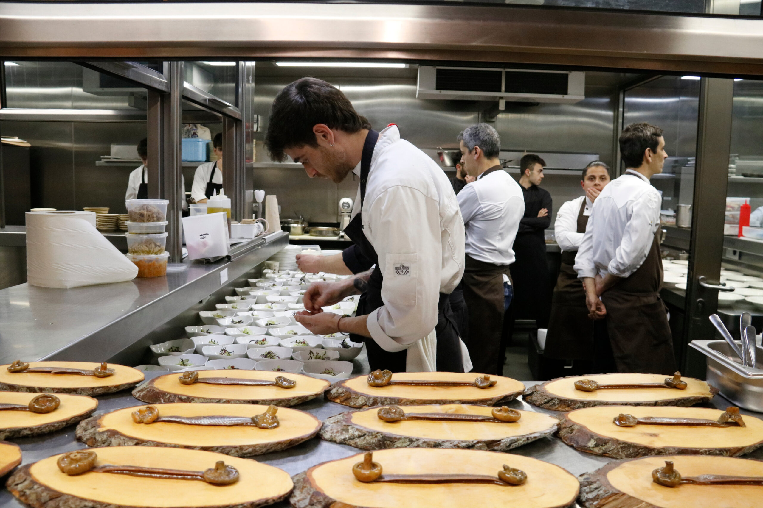 Al llarg de tot el servei, cuiners de tots els restaurants han ajudat als altres a emplatar i acabar elaboracions. Juncà ha assegurat que han treballat “com un sol equip” en comptes de tenir cada restaurant el seu. Això ha permès que la màquina funcionés com si fos la dinàmica habitual i de cara a la sala ningú ha notat cap relleu en les cuines. Una mostra de la sintonia, la cooperació i la família que han creat tots els restaurants que tenen una estrella a la demarcació de Girona.