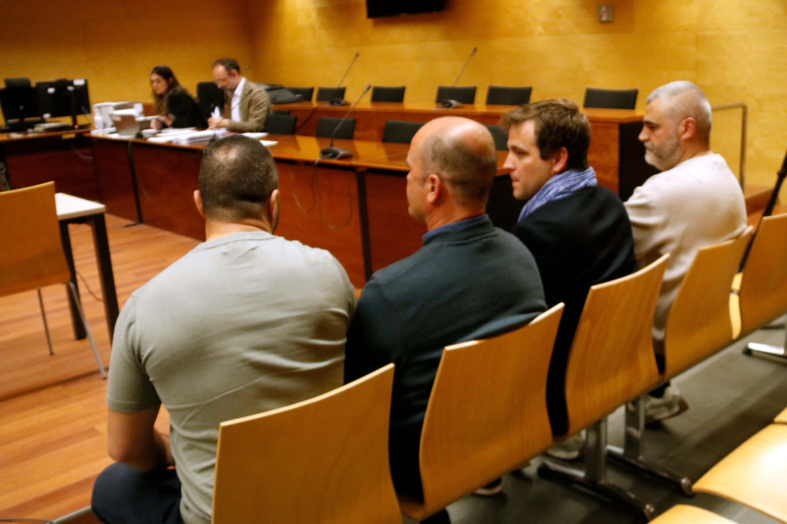 Al banc dels acusats de la secció quarta de l’Audiència de Girona s’hi asseuen l’alcalde de Vidreres, Jordi Camps, l’aleshores inspector de la Policia Local i dos agents, defensats pels lletrats Carles Monguilod i Míriam Campa.