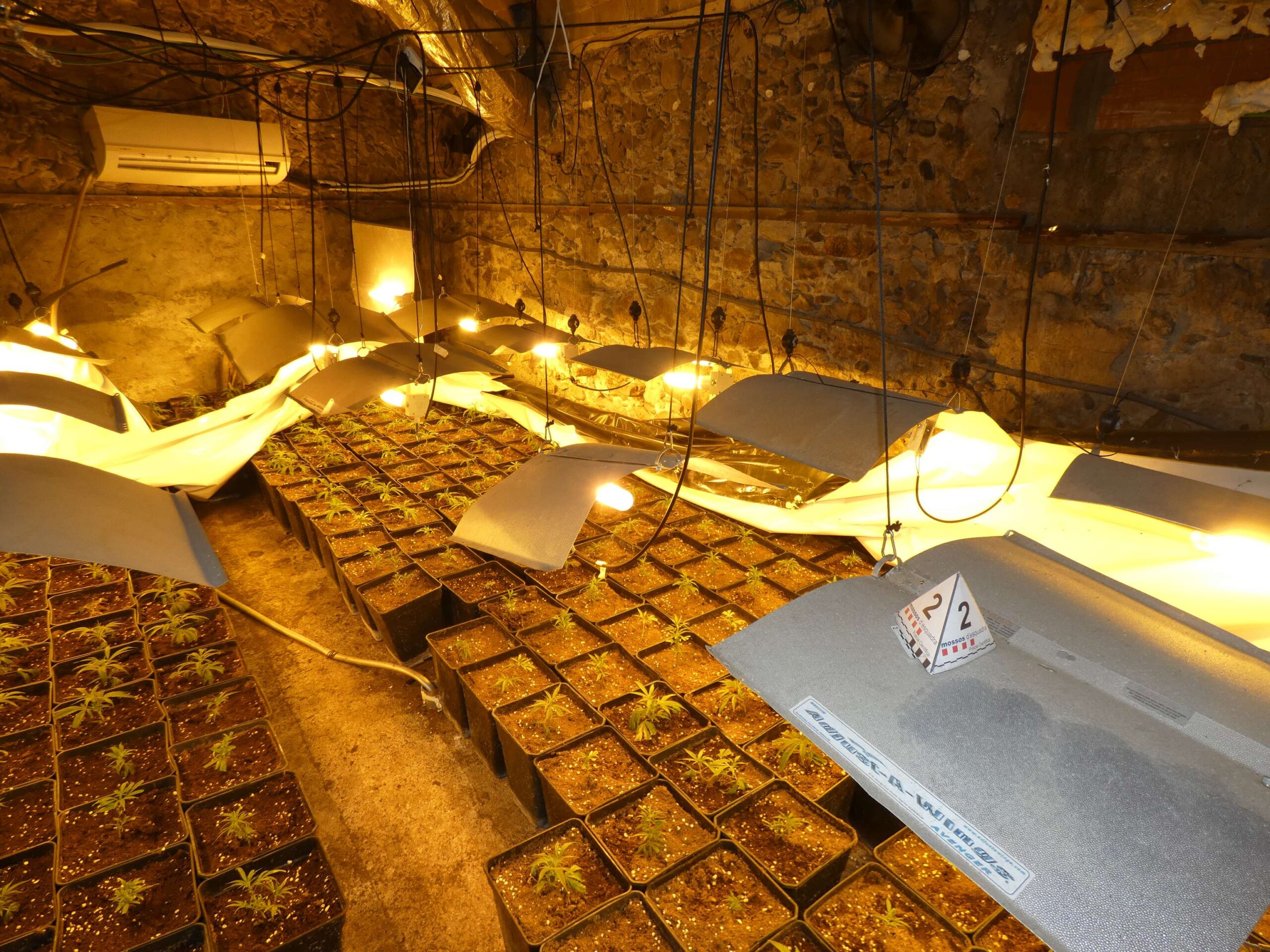 ACN Vilanova de la Muga – Els Mossos d’Esquadra han desmantellat una plantació de marihuana que hi havia dins d’una casa a Vilanova de la Muga (Alt Empordà). Es tracta d’un habitatge on hi havia 992 plantes repartides en el soterrani de la casa. Els agents van detenir dues persones com a responsables de la plantació per un delicte contra la salut pública. A més, els agents van comprovar que tenien la llum punxada i per això els consideren autors d’un delicte per frau del fluid elèctric. A banda de les 882 plantes de marihuana, la policia va emportar-se làmpades i sistemes de climatització que s’utilitzaven per al creixement de les plantes.