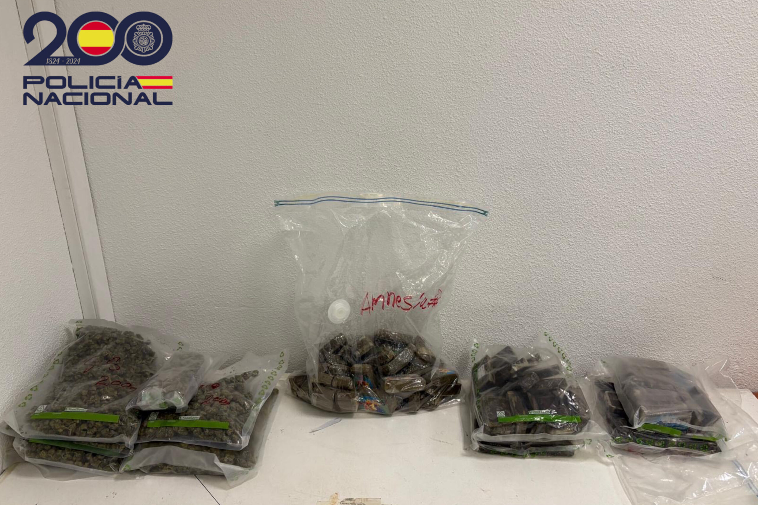 Per aquest motiu, els agents l’han seleccionat per realitzar una comprovació més exhaustiva. Li han demanat que obrís les dues maletes que portava i han trobat diverses drogues. D’una banda, 10 quilos d’haixix que estaven preparats en pastilles, sobres i pots. A més, duia 1,4 quilos de marihuana i 86 sobres individuals amb aquesta planta il·legal. D’altra banda, també transportava 29 càpsules d’amfetamines i 40 pots de codeïna, que se sol utilitzar per elaborar altres substàncies estupefaents.