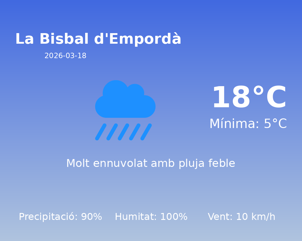 Avui, 18 de març de 2026, a La Bisbal d’Empordà, ens esperen condicions meteorològiques significatives. És essencial estar preparat per als canvis sobtats que es puguin produir durant el dia.