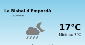 El temps avui 14 de Febrer de 2026 a La Bisbal...