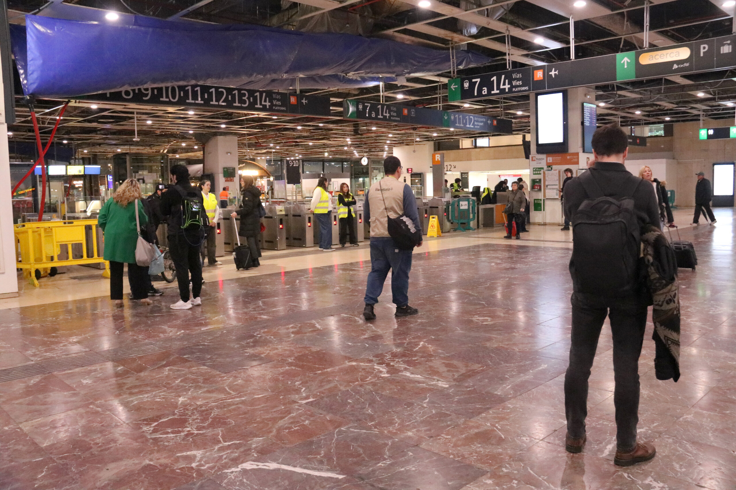 La situació d’aquest dijous a primera hora amb l’estació de Sants pràcticament buida amb moviment només a l’alta velocitat contrasta amb la d’un dia feiner normal en un dels principals nodes de transport del país.