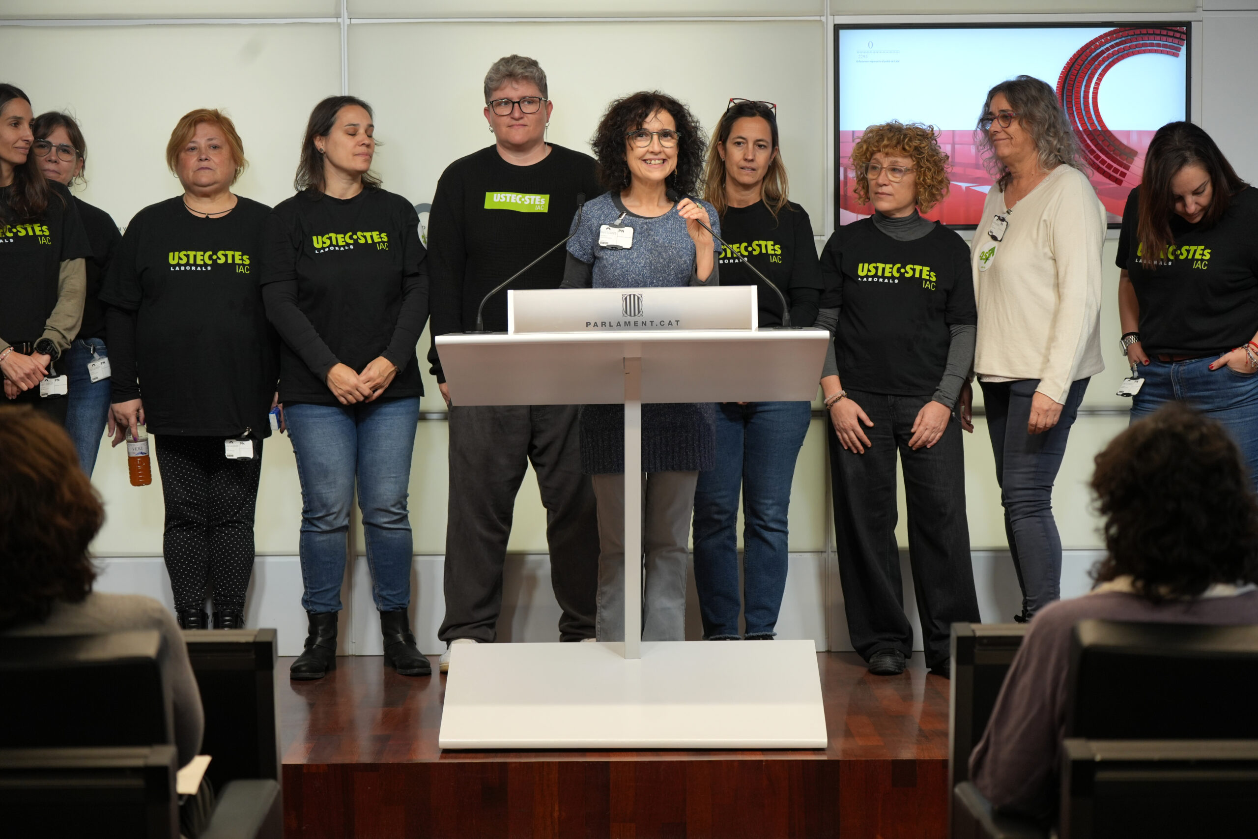 La portaveu de Personal Laboral d’USTEC-STE, Eva Costa, ha agraït aquest dimarts en roda de premsa des de la cambra catalana el suport dels grups parlamentaris i ha confiat que fins i tot el PSC acabi votant a favor d’aquesta resolució, que es debatrà i votarà a la Comissió d’Educació. També ha assenyalat que la proposta és “fruit de la lluita i feina al llarg del temps” i que pretén concretar l’acord a què els sindicats van arribar la setmana passada amb el Govern després d’una tancada a la seu del Departament, ja que aquell document no concreta l’increment salarial ni parla de la reclassificació.