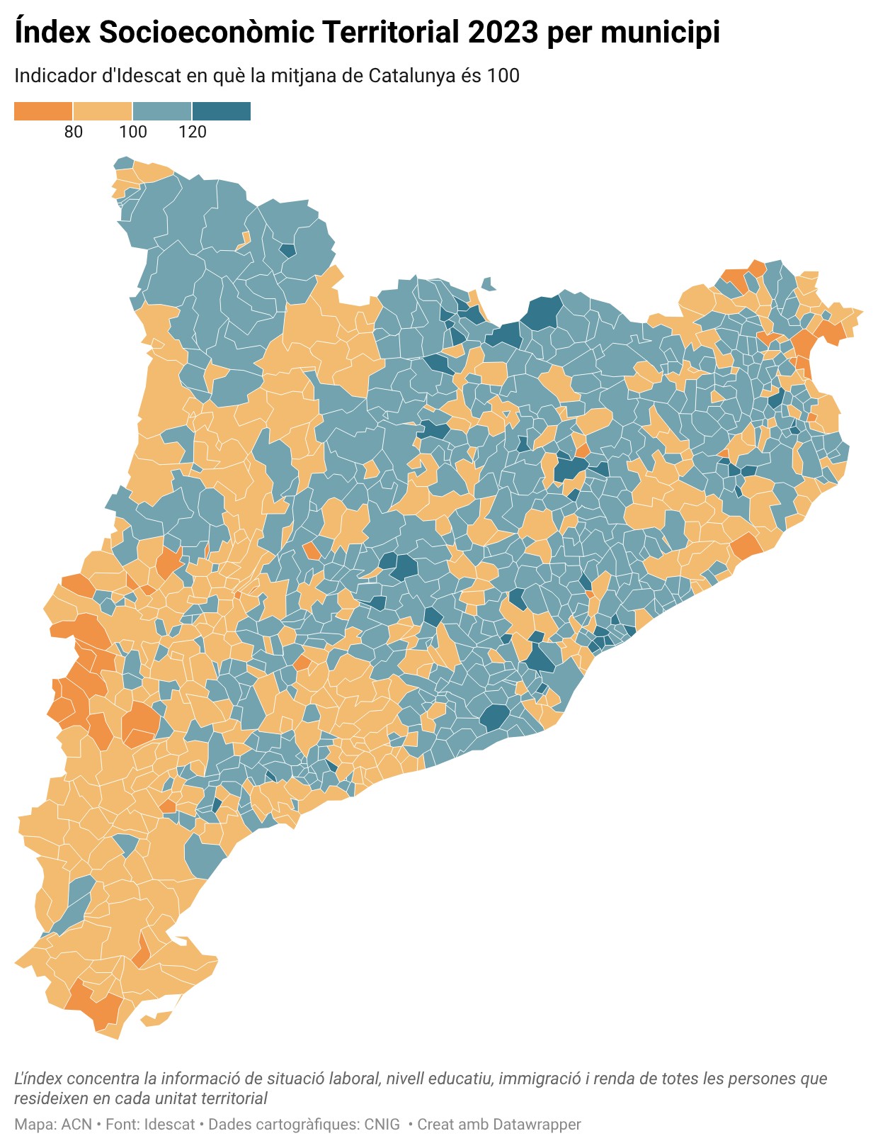 ACN Barcelona – Matadepera torna a ser un any més el municipi de més de 1.000 habitants amb un índex socioeconòmic territorial (IST) més alt de Catalunya. La població vallesana lidera el rànquing des de fa una dècada, quan Idescat va començar a elaborar l’indicador, que concentra les dades laborals, educatives, d’immigració i de renda en un sol valor. La mitjana catalana és de 100, i Matadepera té un índex de 129,9. Tiana (124,7) i Sant Just Desvern (123,9) completen el podi. A l’altra banda de la balança, Salt (59,8) se situa a la cua de l’indicador al país, com cada any des de l’inici de la sèrie històrica. Sant Pere Pescador (62,9) i Seròs (65,4) segueixen la població gironina. La meitat dels municipis amb un IST més baix són a les comarques de Ponent.