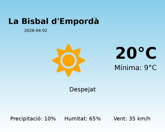 Predicció del Temps a La Bisbal d’Empordà per al 2 d’abril de 2026