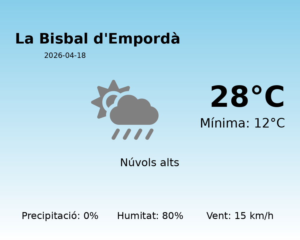 El cel es mantindrà en gran part clar al llarg del dia, sense risc de precipitacions, ja que la probabilitat de pluja és del 0%. Això significa que és un dia perfecte per activitats a l’aire lliure, com passejades pel paisatge encantador de l’Empordà.