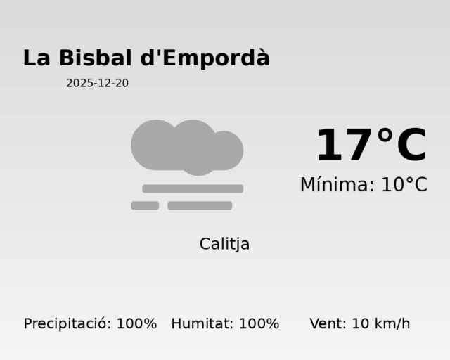 Predicció del Temps per a La Bisbal d’Empordà – 20 de Desembre de 2025