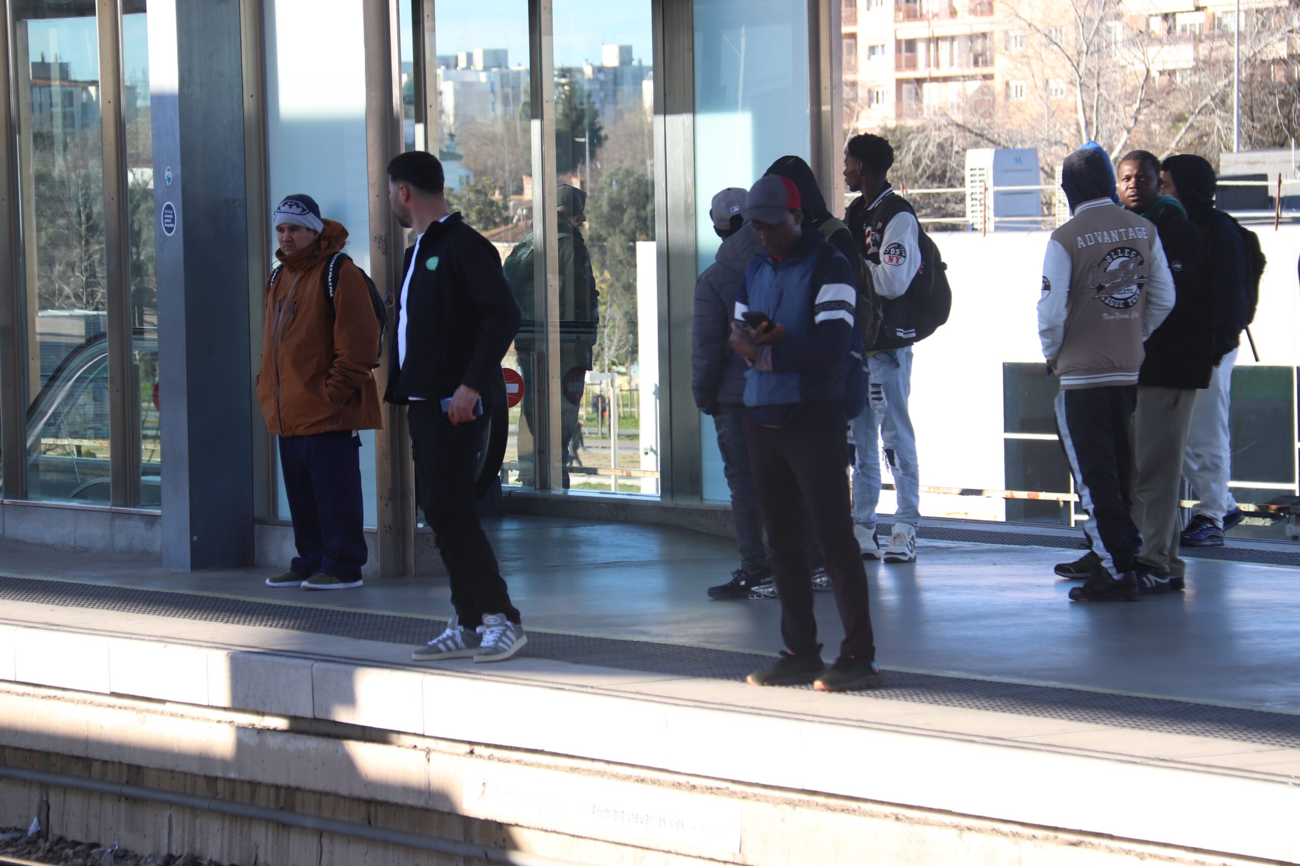 A l’altra andana, la megafonia anuncia un tren en direcció a Barcelona. Ho farà una hora i quart més tard del previst. En ella hi ha diverses persones esperant resignades. També hi ha l’Anita amb la seva família que estan de vacances. Venen dels Països Baixos i explica que “estaven al cas” dels retards i per això han comprovat els horaris abans d’anar a l’estació.