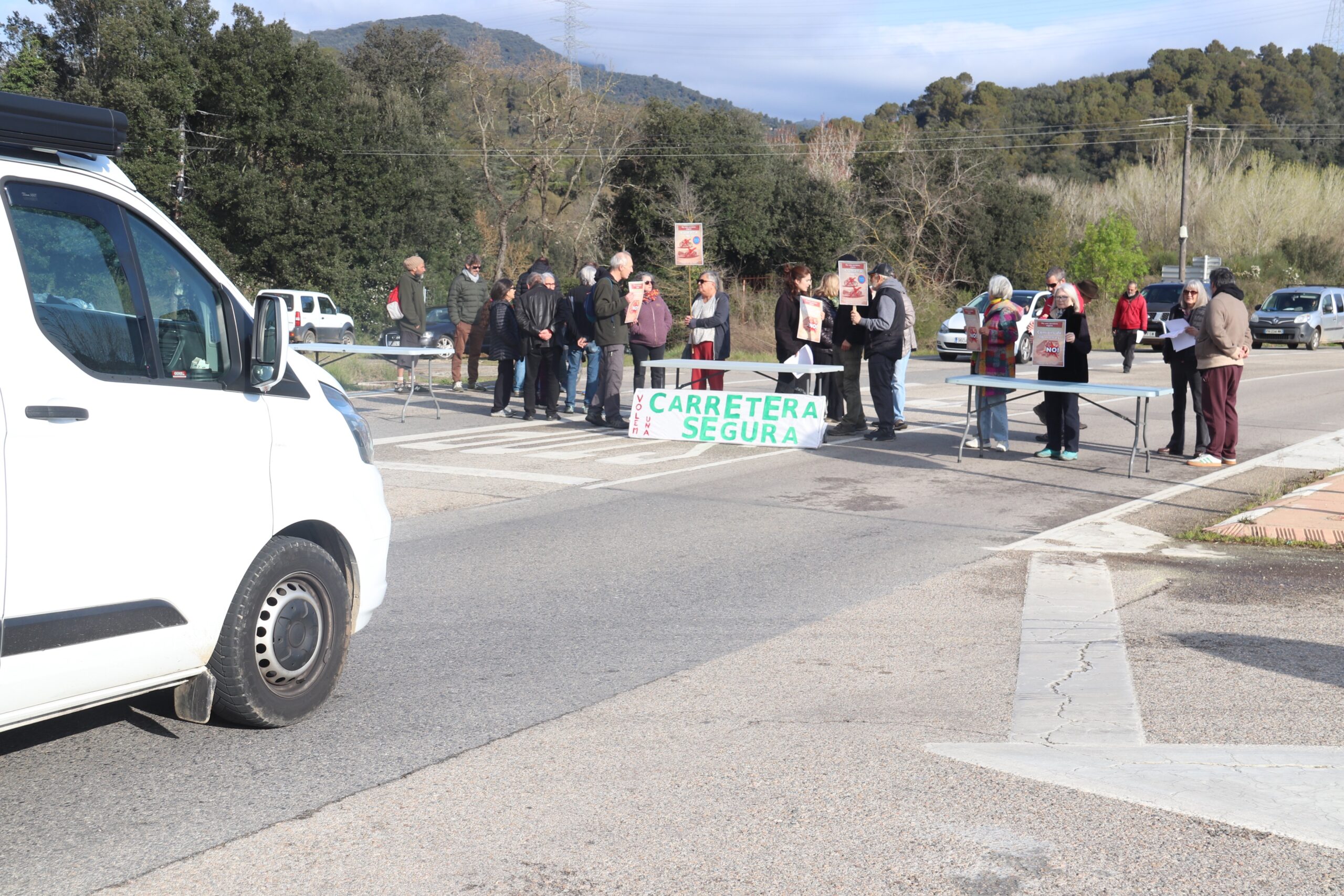 ACN Canet d’Adri – Una trentena de veïns de la Vall de la Llémena han tallat la carretera GIV-5313 entre Sant Gregori i Llorà (Gironès) aquest dilluns al matí per protestar en contra del projecte d’ampliació de la carretera i el pas de camions de 16 metres en horari escolar. Els veïns han portat pancartes i cartells reivindicatius en el tall de circulació que ha durat uns minuts i han aprofitat per entregar un manifest per escrit als conductors que han quedat aturats. A més, la plataforma Per una Carretera Segura ha retret que l’Ajuntament de Sant Aniol de Finestres (Garrotxa) hagi abandonat la mancomunitat de la Llémena per desvincular-se dels acords en matèria de restricció de camions.