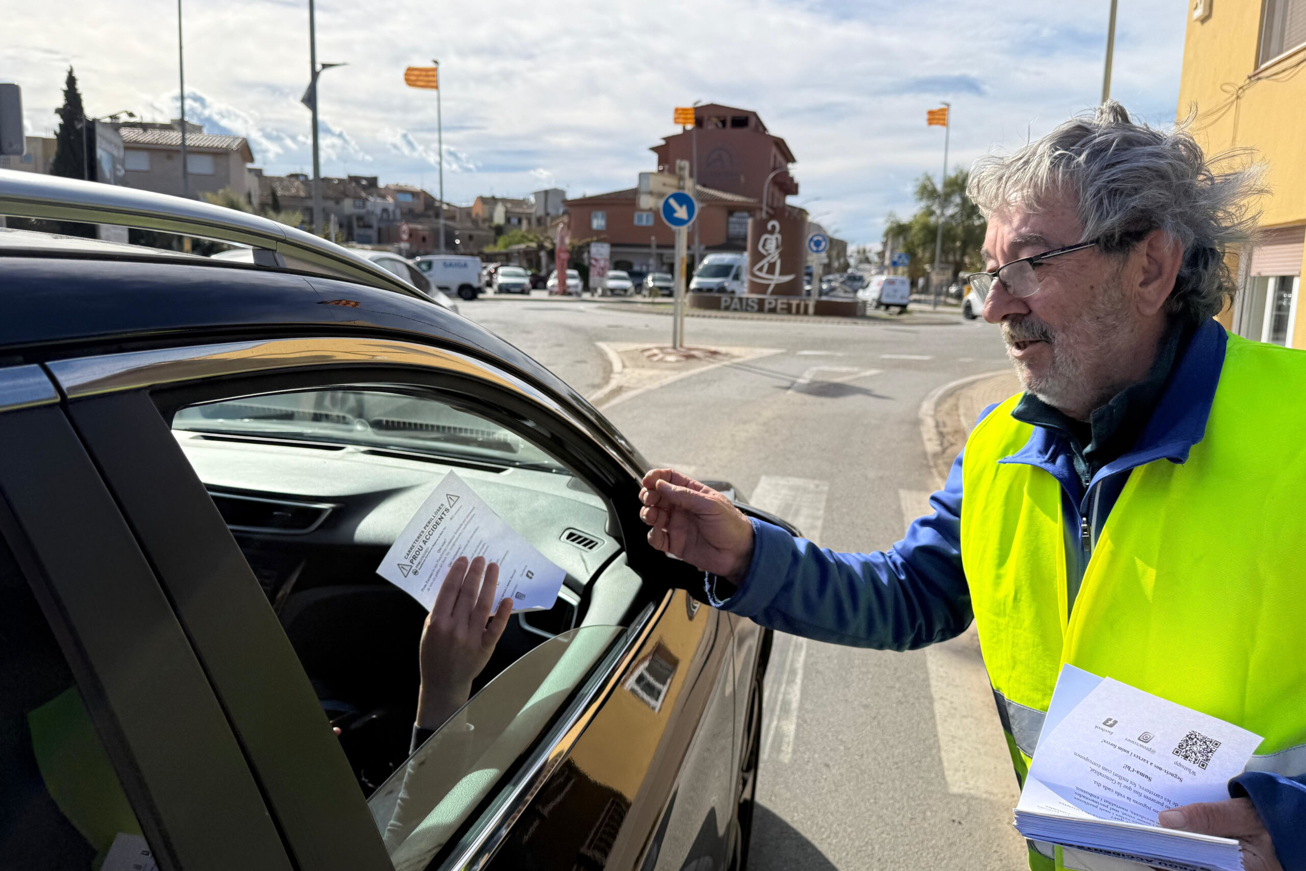 Però on més col·lapse s’ha generat ha estat a la rotonda de Verges, just on hi ha una escultura de la Dansa de la Mort. Ha estat allà on la plataforma ha repartit més tríptics entre els centenars de conductors que venien de Torroella, la Bisbal, Figueres o Jafre, on hi havia el tercer punt informatiu.